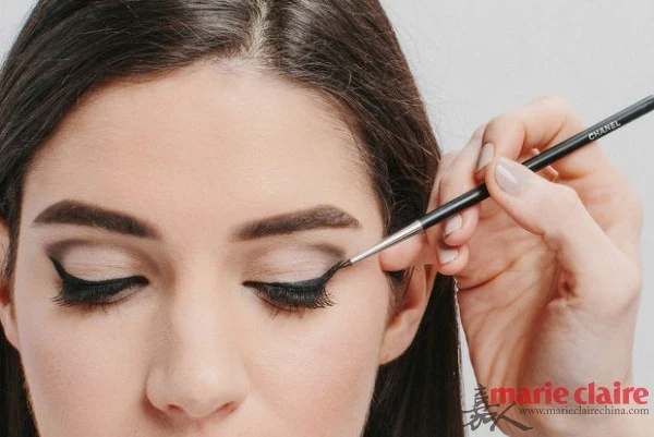 赫本式的妝容的特點就是完美的眼妝,使用眼線膠來畫出一條順滑,流暢的眼線。從眼頭內側開始,向眼尾逐漸線條變粗,並且在眼尾出飛出一個小翅膀,這樣赫本式的眼妝就完成了!