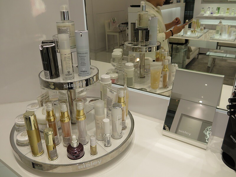 產品陳列台一區區的分得好清楚,面膜區、精華區、唇部保養區整整齊齊,「Sisley全能乳液」為保濕護理區!「Sisley全能乳液」也都被陳列在最明顯的位置。