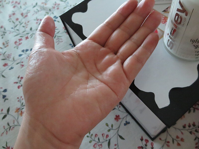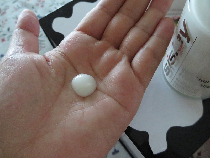 因為它很快被肌膚吸收,所以我早晚都會使用於化妝水、精華液後,擠壓一下的量於左手掌心,然後雙手合十進行溫熱,是溫熱即可不需要大力搓揉喔!(我原本真的沒有使用乳液的習慣,我是為了它厲害的成分而使用!)