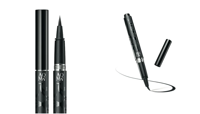 在眼彩上完後,使用舞蝶眼線造型液勾勒眼線。只需按壓2次,就能畫出俐落的線條,順著眼睛輪廓一筆帶過,可以嘗試今年流行的小貓眼。