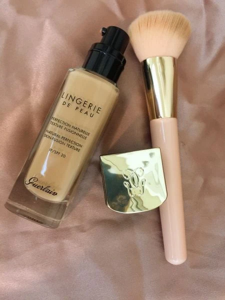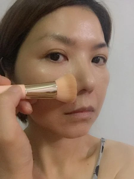 美妝必備重點1:「輕裸感粉底液」+「澎澎彈膚粉底刷」