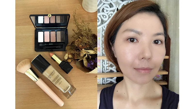 將粉底液擠在掌心,用粉刷在兩頰塗抹,再推至全臉。(如果你的膚質好,可以局部使用粉底,妝效會更年輕喔!)臉上有瑕疵,可以用「輕裸感瞬時柔焦遮瑕膏」先輕點、再稍加暈開來修飾,讓妝感更自然。