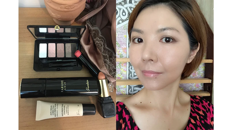 要訣:「24K純金光粉底」+微醺眼妝+玫瑰唇「24K純金光粉底」一直是明星商品! 其中添加細緻珍稀純金雙面粒子注入,透過光線的交織折射,讓肌膚的瑕疵隱形,提亮黯沉部位,就像包覆上一層發光的面紗,非常適合用來打造秋冬奢華光澤裸肌。