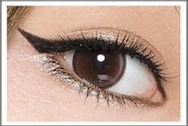 STEP1. 在睫毛根部沿著眼形順畫平拉至眼尾0.3cm。