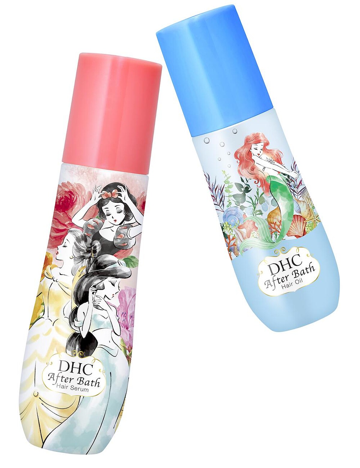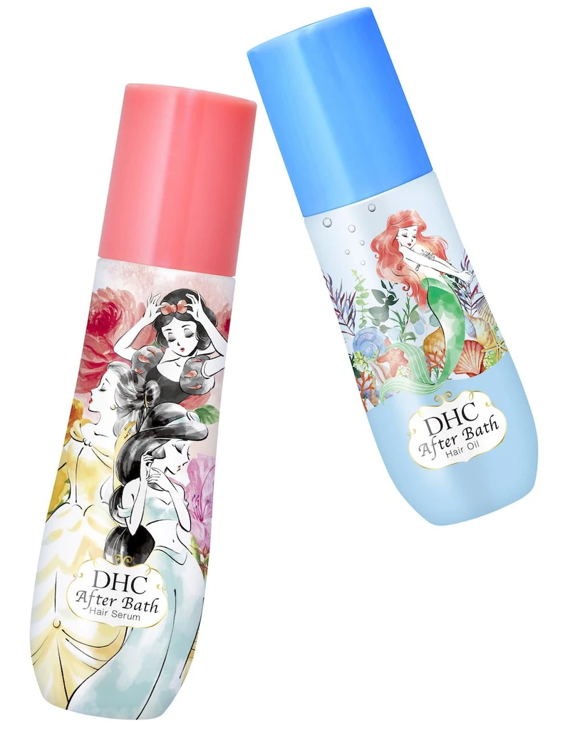DHC每次的聯名限定都不會讓人失望,2019年底和迪士尼公主系列合作推出限定包裝,鎖定頭髮養護的產品,推出兩款和迪士尼公主聯名的護髮產品,分別為小美人魚限定版 玫瑰亮澤護髮精華(免沖洗)和迪士尼公主限定版薰衣草柔順護髮乳(免沖洗)。