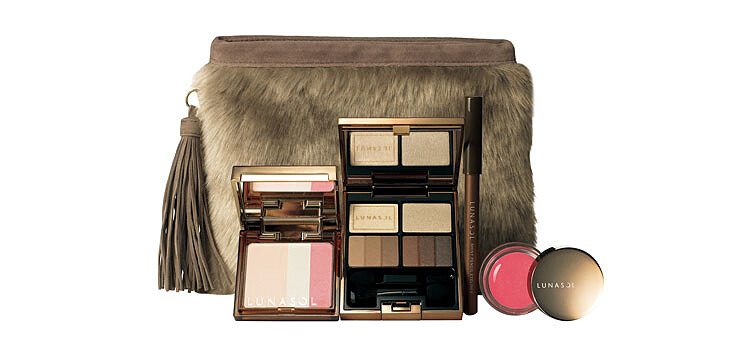 今年LUNASOL推出的聖誕彩妝組合包含了美麗漸層質感與色調的─晶巧光燦眼盒、能夠明亮自然光澤美肌與澄淨紅潤感的聖誕限定修容─晶巧亮澤顏彩盤、柔滑觸感,水潤持久,賦予雙唇自然紅潤感與光澤─晶巧果凍唇蜜、帶來上質光感的深邃棕色,強調眼部線條─晶巧輝透眼線筆,以及毛料質感加乘─派對手拿包,跟著秋冬時尚趨勢使用皮草做為點綴裝飾,充滿流行感!