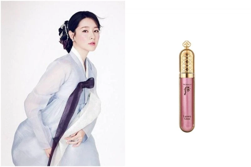 唯美的形象圖中則用到皇后之吻晶燦光炫耀唇蜜,讓雙唇水亮感更明顯,偏粉的R13完美突顯李英愛古典溫婉的氣質。
