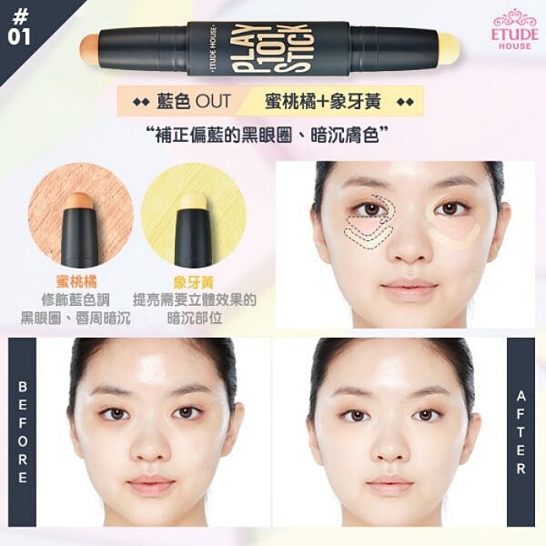 ETUDE HOUSE筆筆皆飾~101炫彩百搭魔術棒(雙效校色修飾),1.7g*2,650元