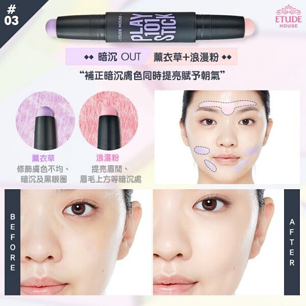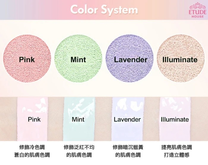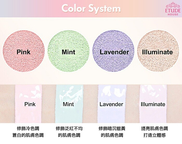 ↑↑ #3:針對暗沉設計的浪漫粉+薰衣草紫,浪漫粉使蒼白肌潤色提亮,薰衣草紫針對暗沉處進行校正。
