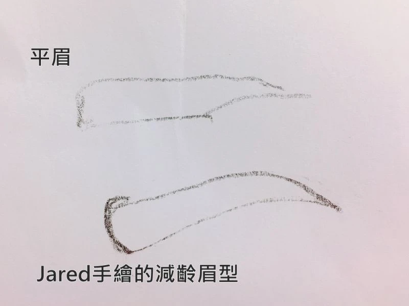 平眉的眉頭部份多半看起來偏方頭,Jared建議將上緣畫斜一點,讓眉頭看起來比較像是圓弧形