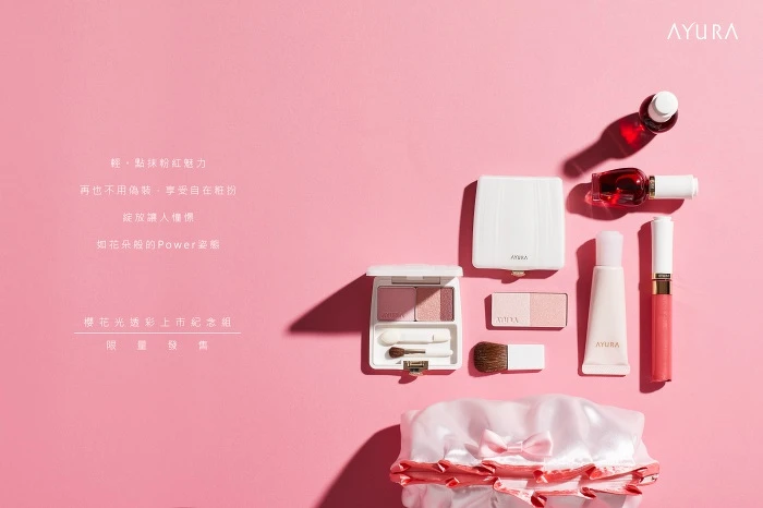 「HAPPY PINK POWER ME」系列更一口氣推出繽紛花束漸層眼影、蜜絲絨頰彩、微光暈蜜唇露、輕羽濃密睫毛膏、立體柔霧眉筆和輕滑眼線膠筆等彩妝新品。更祭出櫻花光透彩紀念禮盒,裡面更有限量販售的『AYURA 繽紛花束漸層眼影RS01』,超值得入手啊!