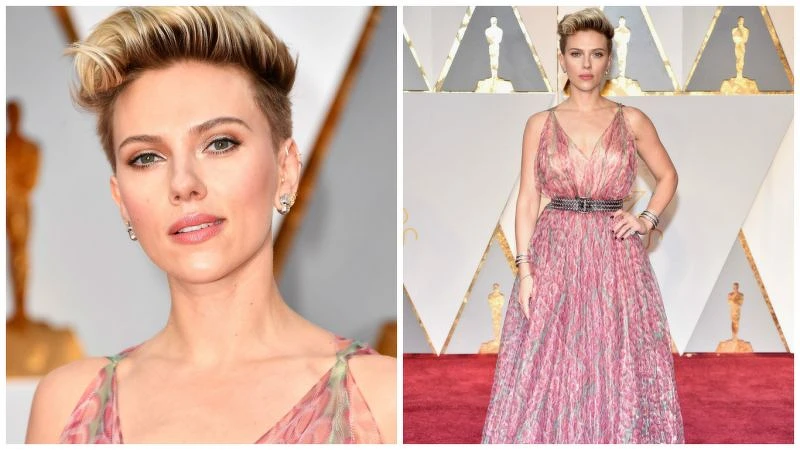 史嘉蕾喬韓森一頭後梳油頭帶出了氣勢!腮紅與唇彩也相當搶眼!她擦上的是NARS高潮腮紅和莓果色絲絨迷霧唇筆Get Off,整體妝容顯得時髦又星光閃閃!