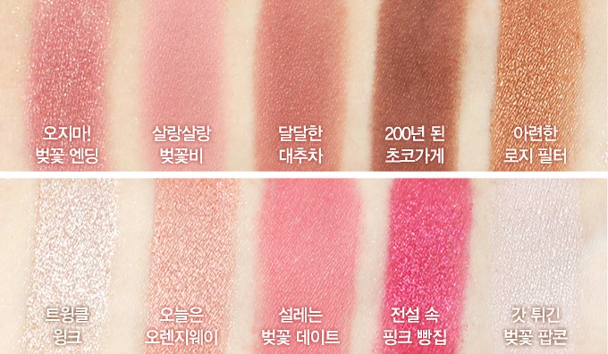 不論是陰影、打亮、打底,一盤通通都能搞定。一口氣推出10個色系,從淺色粉櫻及鮮豔桃紅櫻花、深邃的酒紅色、到帶點粉嫩的大地色調都具備。絲綢般的細緻觸感,非常柔軟且好暈染,更重要的是顯色度極佳,能長時間維持完美眼妝。