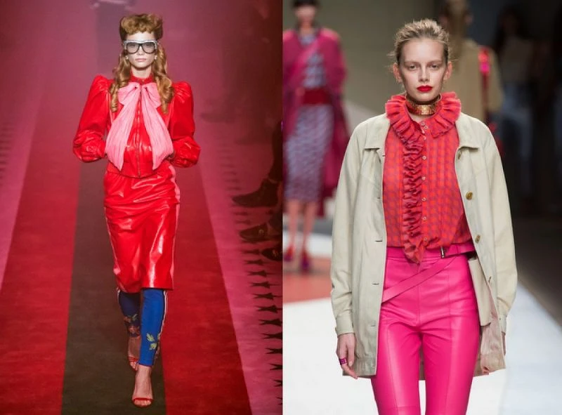 不論是春夏熱情自由的繽紛色系、到剛發表的早秋濃郁復古色調,時尚界運用基相近色調的異材質混搭設計,已成為一股風氣。想將色系相近的造型穿得更為出色,關鍵就在善用布料材質的光澤度來營造層次感。即使是相同顏色,藉由不同布料的獨特紋路與光澤,如:飄逸雪紡X亮面絲絨的搭配、沈穩毛呢X光澤混紡的堆疊、溫暖針織X PVC皮革異材質…等組合運用,展現出視覺上豐富的層次趣味。