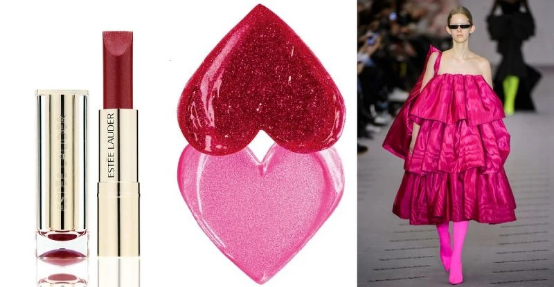 帶點螢光色調的誇張桃紅造型,最適合選擇穿著出現在PARTY中,具有珠光效果與金屬感質地的混搭唇妝,完全貼合洋裝與鞋款的異材質搭配主題,擁有各自閃耀著光芒卻又如此協調的出色態度。