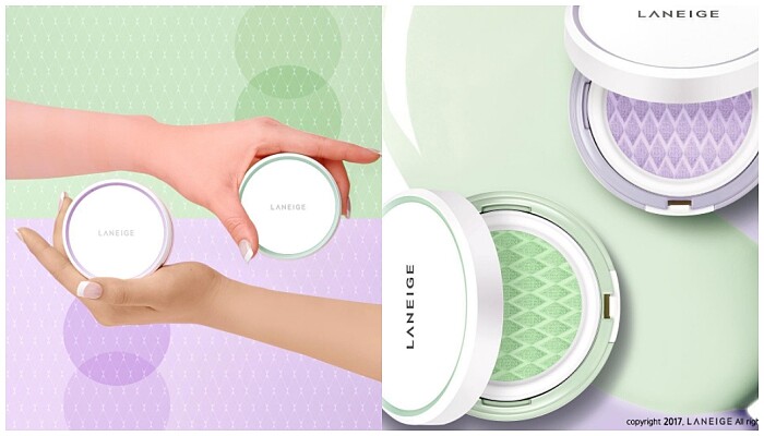 Laneige蘭芝增加了氣墊家族的新成員,每個女孩兒都希望自己的膚色是均勻且透亮,除了靠平常的勤勞保養之外,蘭芝推出「柔光調色氣墊隔離霜」,就亞洲女性最需要的修飾泛紅、增加透明感等訴求為目標,讓每個女孩的妝容都能更加細緻、平滑。