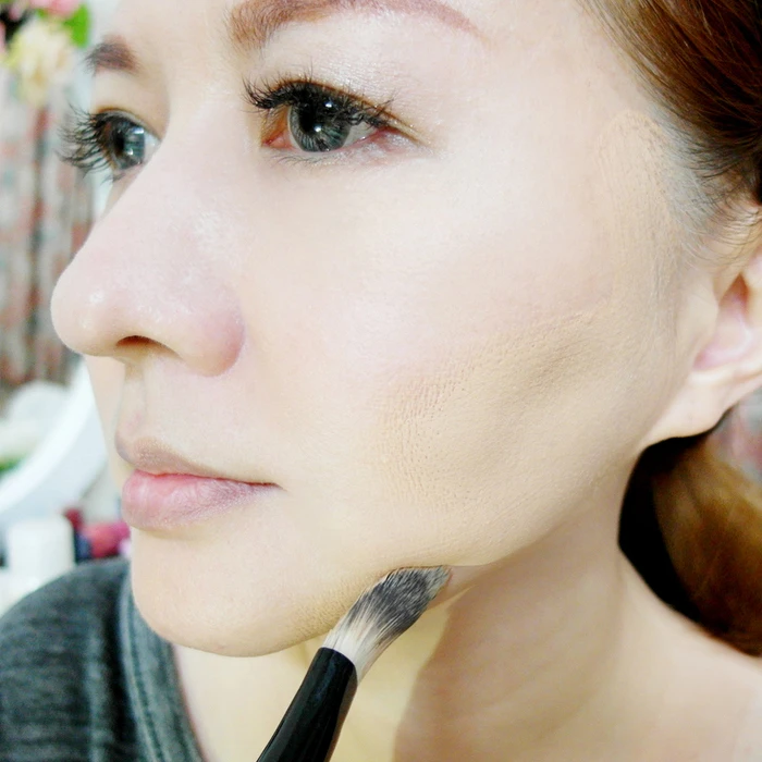 面試時因為緊張或等候時間較長,容易流汗導致脫妝,上妝時挑選持久型的三色粉底,利用與膚色淺、深的粉底做光影效果,輪廓線條瞬間小V臉。