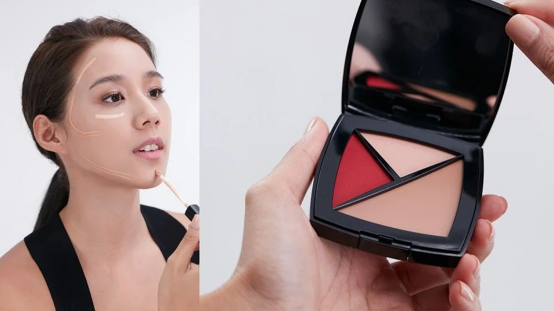 Angelina建議女生必學修容小技巧,好讓輪廓看起來精緻立體!可用先用香奈兒「立體光修片筆」的淺色打亮下眼週和下巴部位;再用深色「立體光修片筆」從髮際線→耳際→下巴線條,畫一個3來修飾臉龐。