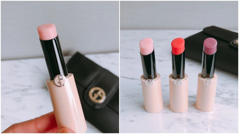 其中奢華訂製裸粉護唇膏推出3色:#1 蕾絲裸粉、#2 喀什米爾粉紅、#3 絲緞粉紫,是Giorgio Armani第一款潤色護唇膏。加入夏威夷果仁精華油潤澤保濕,風蝶木精華油舒緩雙唇,還有維他命E提供修護養分,使雙唇澎彈柔嫩。但特別的就是獨家的「霜轉水科技」,也就是護唇膏一抹瞬間就能幻化成水感質地,輕盈潤飾雙唇。