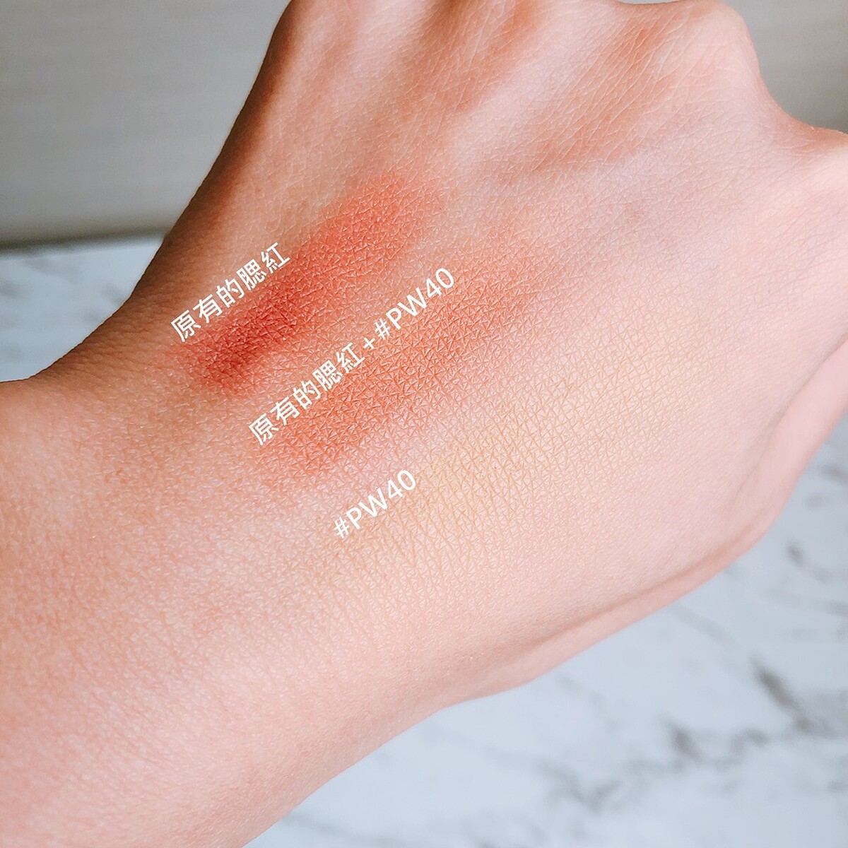 ↑搭配原有的腮紅使用,可以讓紅感腮紅呈現出橘感,妝感更粉嫩溫暖。