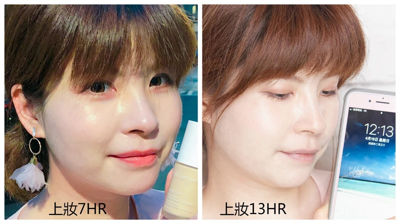 回到家後因為太累懶得卸妝,準備洗洗睡時才發現上妝已經超過12小時(大驚失色)。但瞧瞧這個妝感,竟然還保有不暗沉的光澤,重點連鼻翼下巴這種容易脫妝的部位也很完整、零斑駁感,最愛這種奶油花瓣肌,誰能不沉船啦!