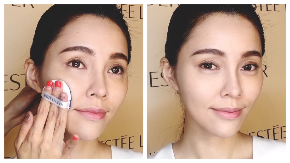 1.局部打亮:可使用氣墊粉餅,拿粉撲沾取部分粉底液,再和和雅詩蘭黛小棕瓶特潤超導修護一起使用,點一滴小棕瓶於粉撲上均勻攪和,在臉部需要打亮處做重點修飾,讓臉部光澤和立體感效果更加強!