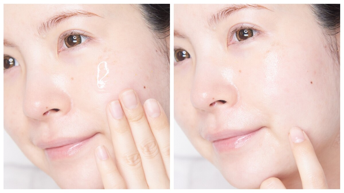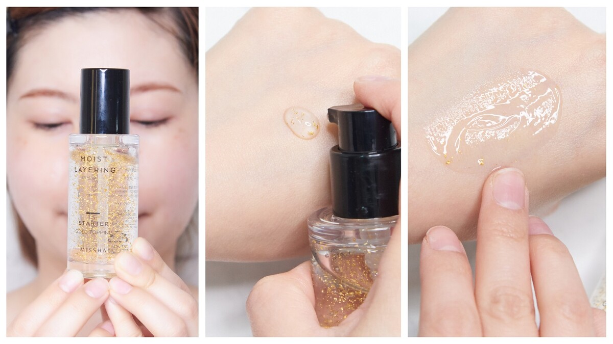 擁有雙重玻尿酸、高達63%的蜂蜜水,以及超過95%純度的珍貴金箔,保濕提亮,還能讓肌膚很光滑,連毛孔都變得不明顯,肌底打好了,底妝完成度已接近50%。