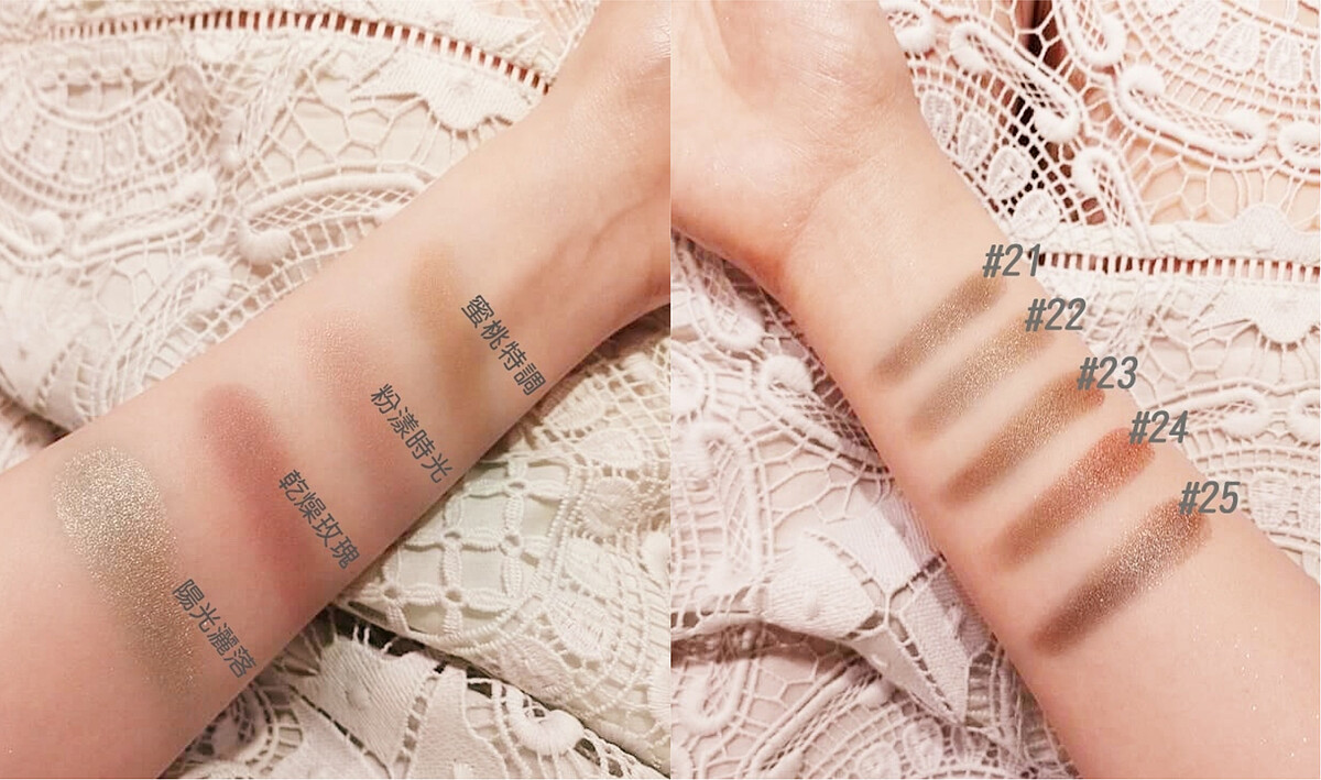 整張臉的色調CLEO也建議用同色調去做變化和搭配,取其中一個部位做重點,不會整張臉都很重或都很淺。如果要變換場合改變妝容,眼影的話就會使用一個基本淺色搭一個深色做暈染!她會加23色在上下眼尾,再用22色加強在眼頭,腮紅的部份會挑能應付深淺眼妝的萬用色,像是義想曲緞光編織腮紅盤的粉漾時光,輕刷就很有氣色又自然透亮。
