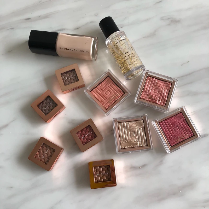 眼睛的光澤則是可以透過眼影做到,CLEO覺得銀色或藍色是很容易失手的顏色,不是人人都能駕馭,或是說要看化妝技巧,畫不好不小心會很可怕。平常自己挑選會以暖色調為主,像是這次MISSHA的義想曲晶燦編織眼影淡淡的光澤,給人溫柔氣質的感覺,#我的自戀主打色 21號就屬於大地色系,是很生活的日常基本色。而且義大利製的質地不飛粉輕擦就很顯色,不會讓眼妝變得髒髒的,最近只要有使用出門都會被詢問很推薦。