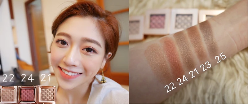 若是長時間工作的時候,逸歡則最在意眼妝擦起來髒不髒。有些眼影顏色髒髒或是珠光太大顆、擦上眼睛眼妝就會顯得很尷尬,加上如果顏色選錯,也很容易有脫妝的感覺。MISSHA眼影是義大利製的,粉質很顯色乾淨,擦上後也很服貼,一次使用NO21.22.24三個顏色完妝也完全沒有飛粉問題。