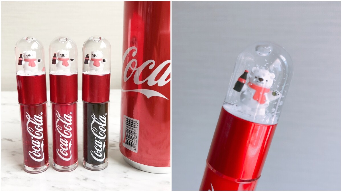 讓人想搶當可樂粉的絕對就是它!頂端有著超可愛的可口可樂熊雪球,輕輕搖晃就能看到充滿雪花的水晶球。唇露質地則以水潤光澤感為主,內含紅果實複方因子(蘋果、歐洲甜櫻桃、橘子、葡萄柚)讓雙唇更加水潤保濕。特別將味道設計成帶有清爽淡淡可樂香,邊擦就像是邊喝可樂般,有種沁涼暢快。