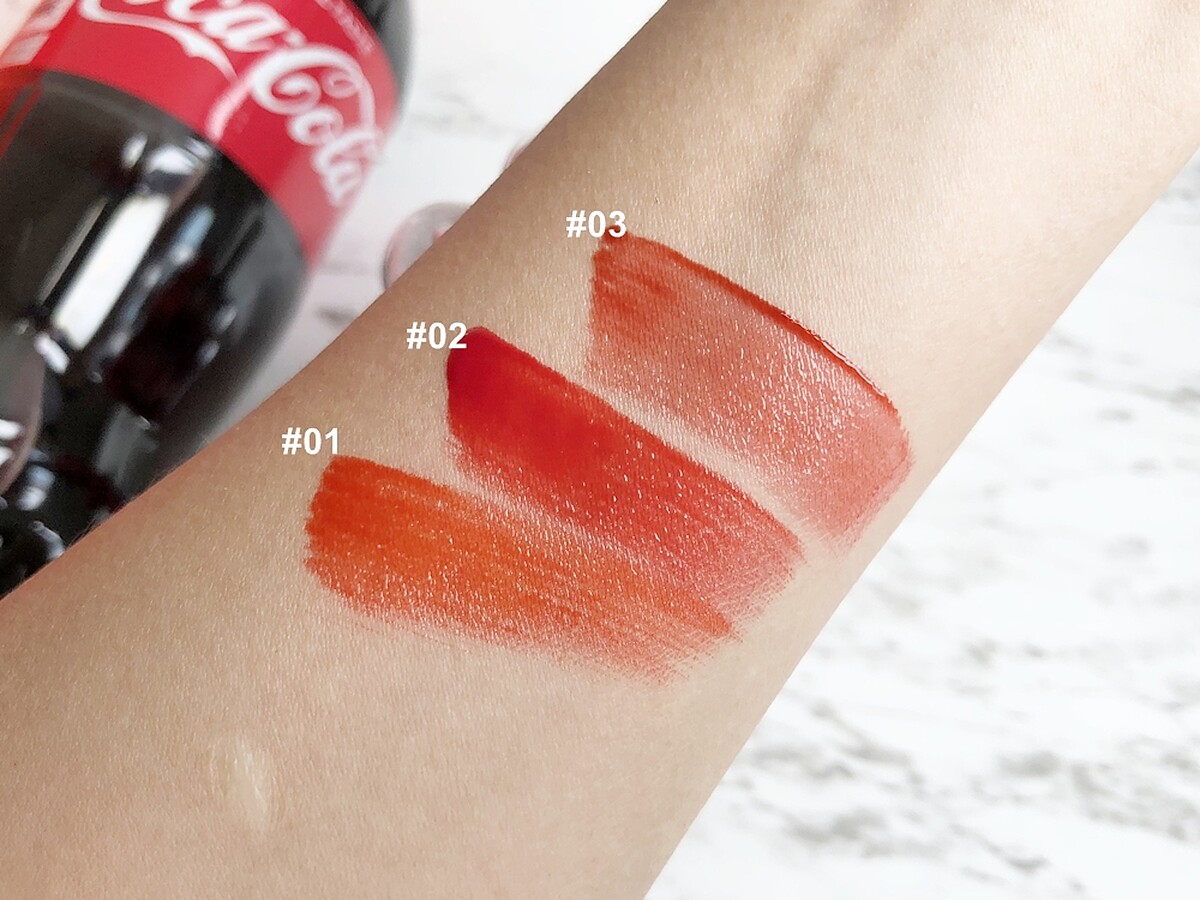 也有唇釉可選擇,水感質地在擦上雙唇後會轉化成微霧感,同樣帶有清爽淡淡可樂香。