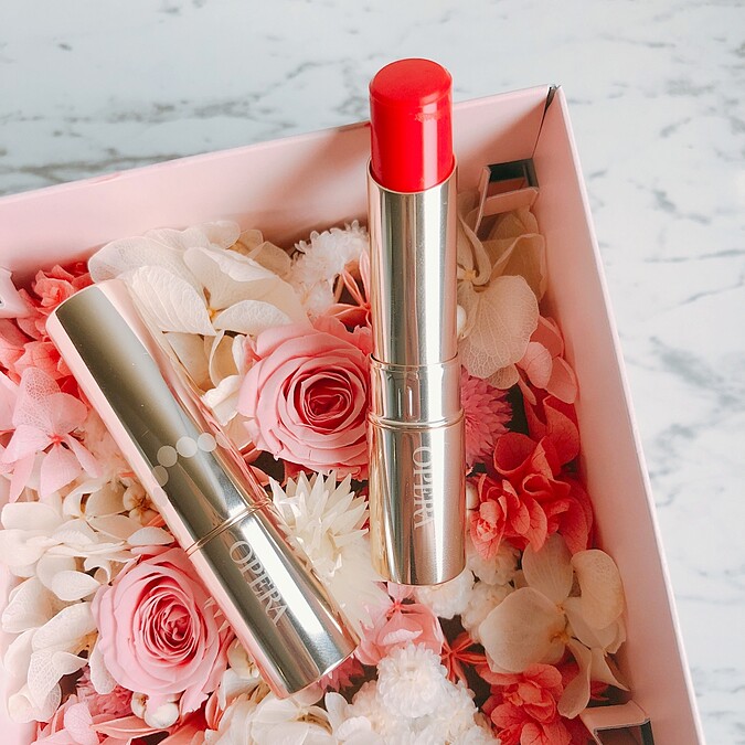 OPERA Lip Tint渲漾水色唇膏的妝感正是以水潤光為主,在光澤的調配上完美地結合了三種相異唇彩優點-唇膏的飽和、唇萃的水潤以及唇蜜的閃耀,同時在成分中加上清爽薄透的精華油,增添唇色的透明感、擦起來也特別柔滑服貼。搭配角鯊烯可解決唇部乾燥,就算沒有另外擦護唇膏,雙唇還是能顯得柔嫩飽滿。