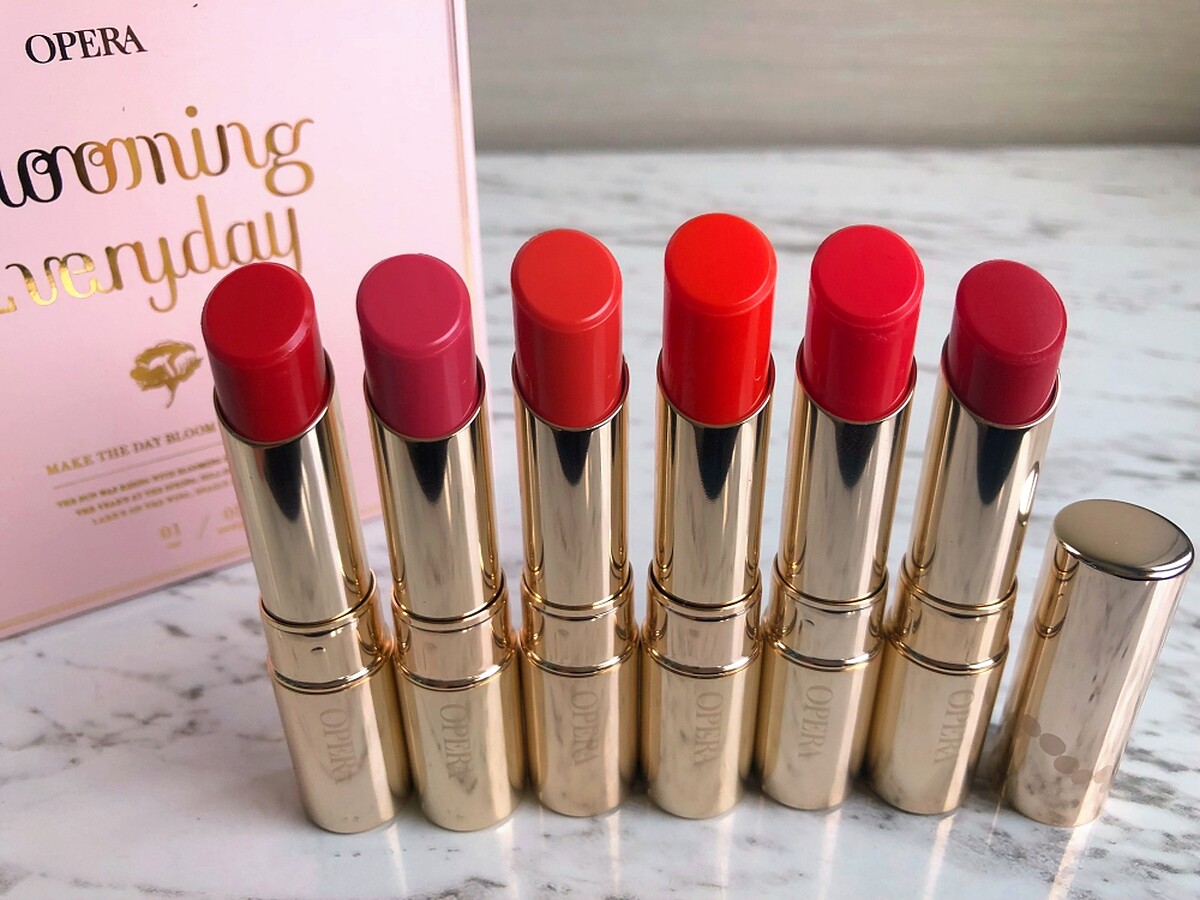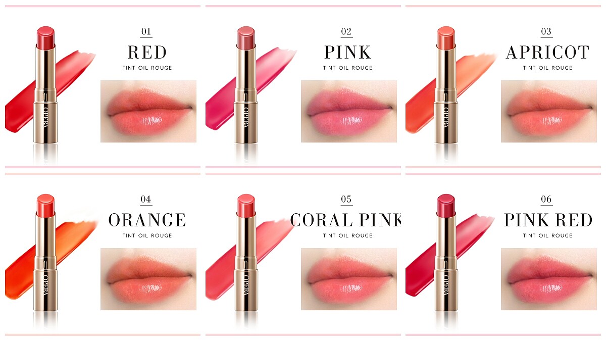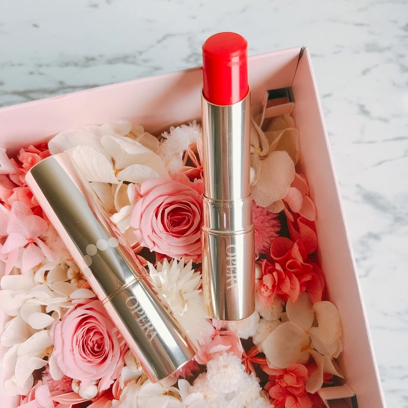 OPERA Lip Tint渲漾水色唇膏目前常態色有6色。其中日本熱銷Top1就是#05珊瑚,以適合亞洲人膚色的珊瑚紅為底,結合了玫瑰粉色,與白紗極為相襯流露出幸福花嫁的美麗氣色,因此#05珊瑚又被暱稱為「花嫁色」。
