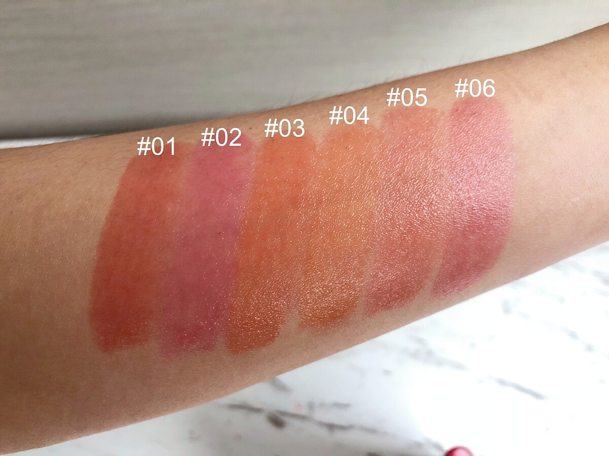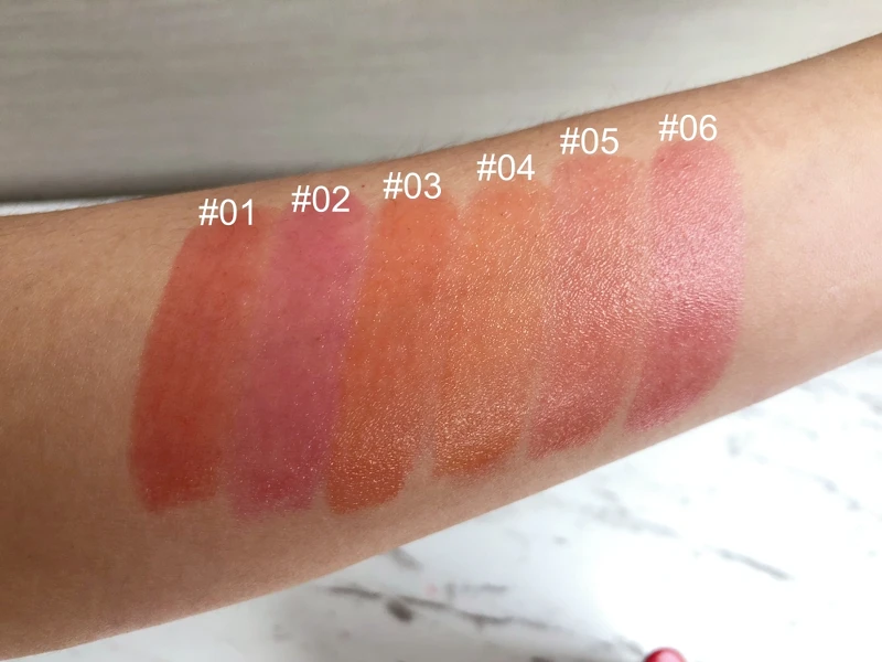 色號,共6色:01蜜紅、02淨粉、03杏橙、04橙橘、05珊瑚(花嫁色)、06玫紅