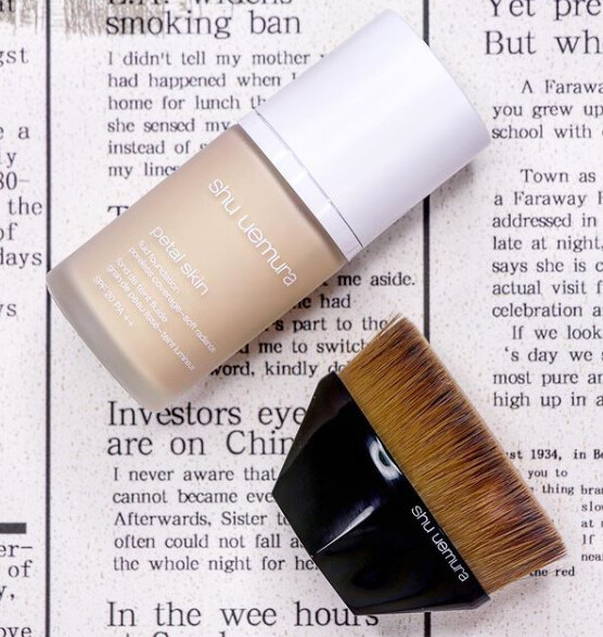 總是顛覆大家刻版印象的植村秀,這次也信心滿滿提出「一刷過粉底液,就看到明顯毛孔修飾力」的新遮瑕概念,並要告訴大家:毛孔不是用遮的!丟掉妳的瓶瓶罐罐毛孔填塞物吧(那些訴求填毛孔的妝前凝膠、厚重重點遮瑕產品…等等),以創新花瓣粉亮科技,搭配橄欖精油和精選的白色花瓣精萃,讓「花瓣肌粉亮粉底液」只需在臉上塗薄薄一層,再用刷毛密實柔軟的「#55零刷痕粉底刷」從臉部中央向外輕刷,輕鬆完妝、肌膚立即自然微霧透亮,對於毛孔人來說苦惱N個夏天的底妝不美問題,這次真的可以得到救贖!