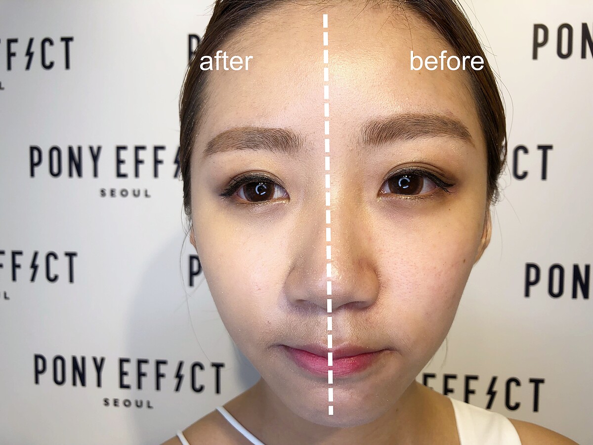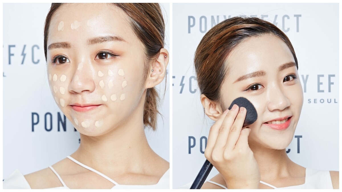 Pony本人也分享了她的上妝技巧,重點就在「少量多次」,先將粉底液以手指少量密集輕點於臉部(包含兩頰、額頭、鼻樑與下巴),再使用PONY最愛的#106魔幻底妝刷小範圍按壓、大範圍螺旋畫圈,輕鬆完成高遮瑕的霧光底妝。