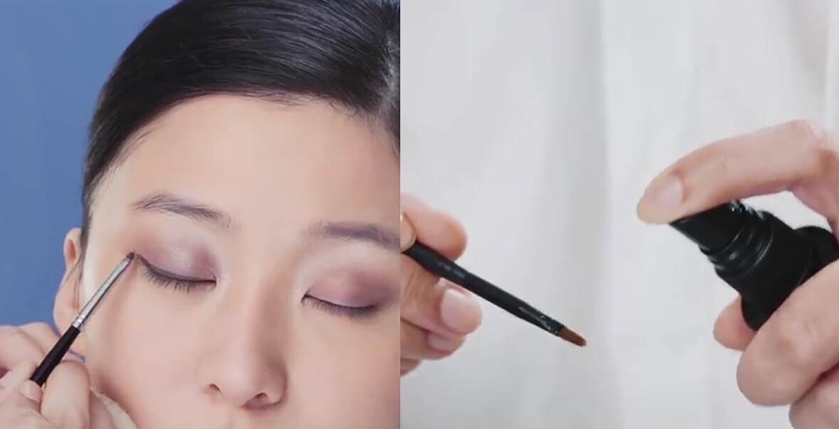 Leslie老師特別教我們一個小技巧:將眼線筆刷噴上自然精油妝用噴霧再描繪眼線,線條會更加柔和喔!