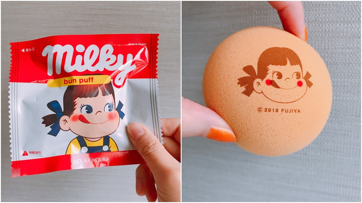 這次聯名系列最特別的,莫過於壓印上牛奶妹LOGO的海綿粉撲,可以乾、濕兩用於底妝產品。