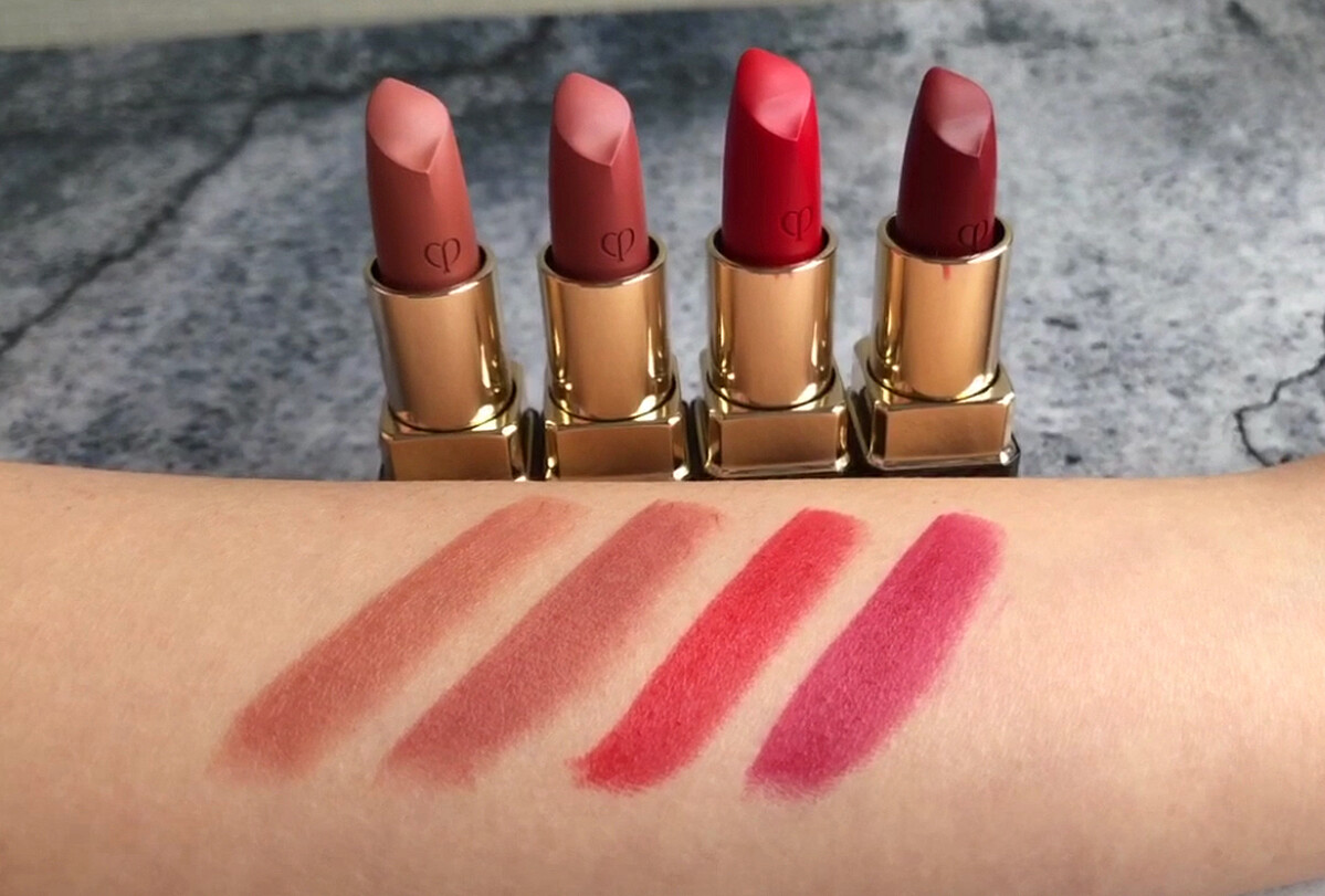 101 Pouty 誘人裸色、102 Sweet song洗鍊棕紅、103 Legend 戲劇深紅、104 Decadent神祕暗紅