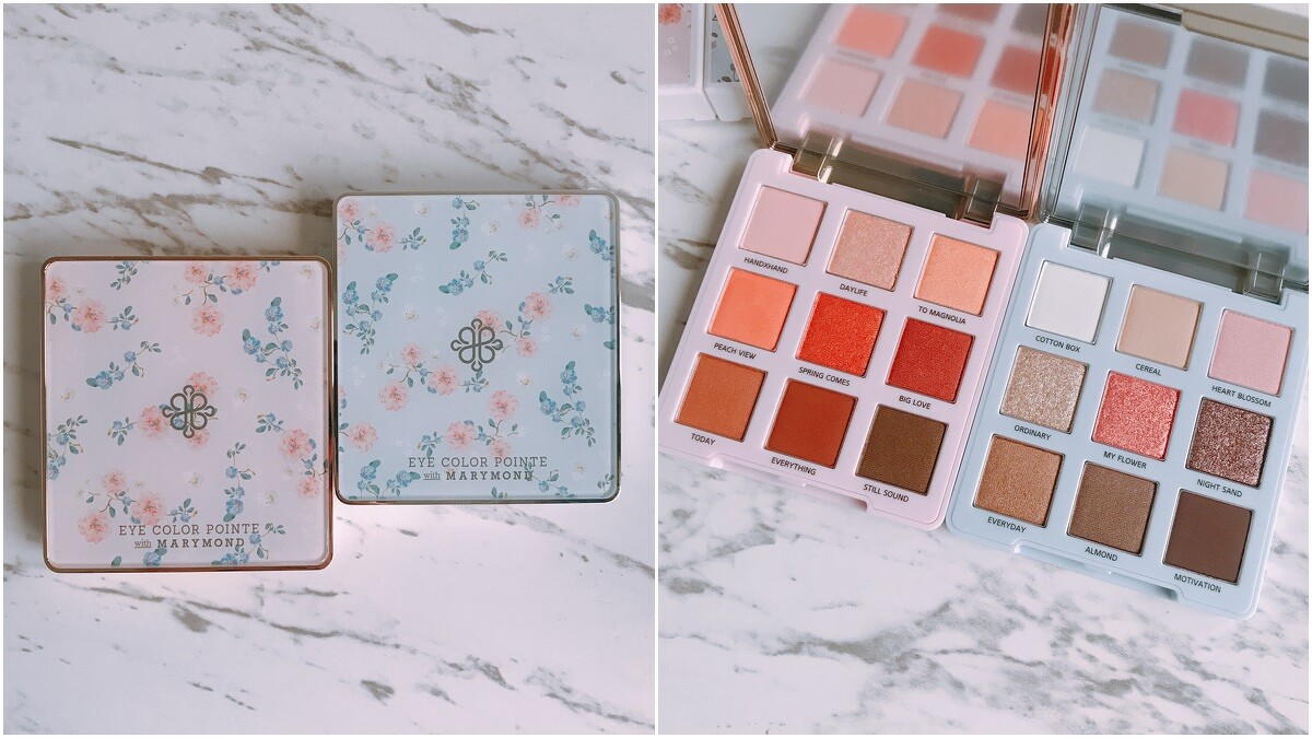 A’PIEU x MARYMOND花舞繽紛眼彩盤分成粉色盤#1繁花盛開、藍色盤#2摩登攝影棚2種色號,集結了霧面、亮粉、珠光3種質地,可以自由疊擦打造多變眼妝。