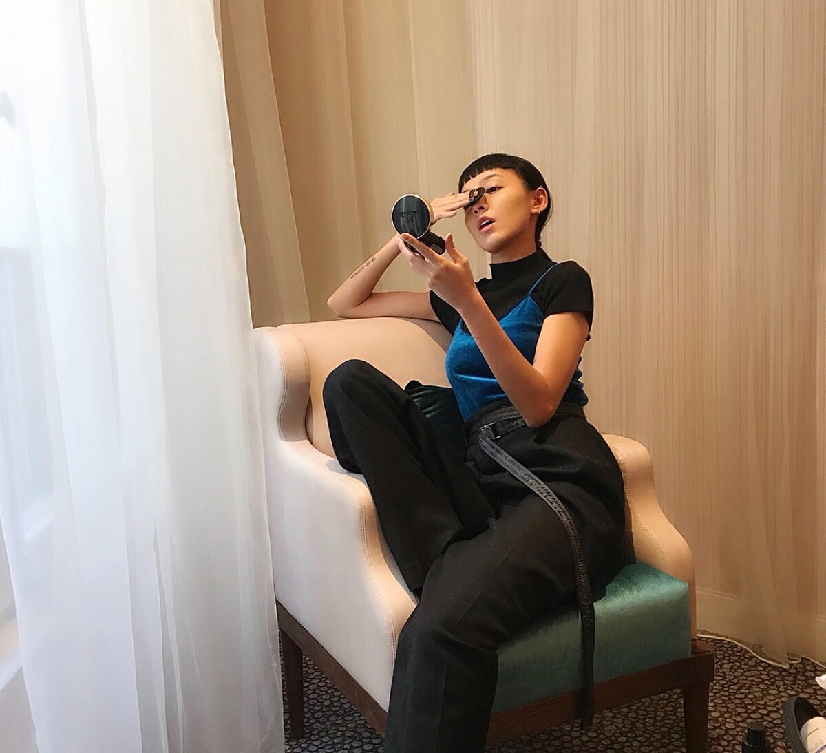 Kiwi:要看工作的狀況來決定,我今天等一下要去逛街,所以妝容會偏自然薄透,因為逛街帶的包包偏小,不能裝太多東西,頂多就是口紅、錢包幾樣小物,所以我會以不用再補妝的粉底上妝,像是Lancome蘭蔻零粉感超持久氣墊粉餅這款氣墊就很符合我的需求。