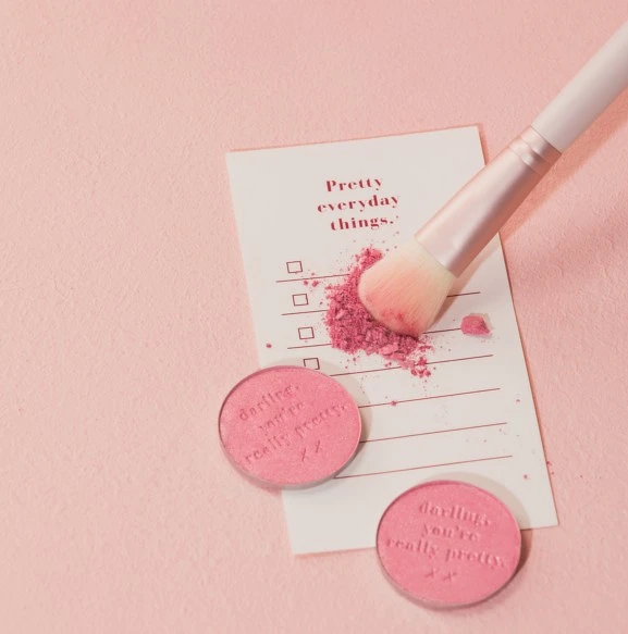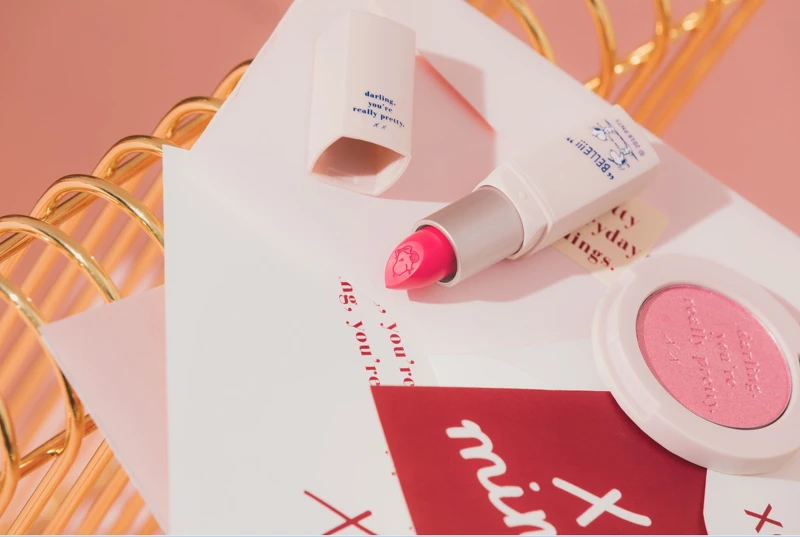Snoopy & Belle彩妝限定組包括了腮紅、唇膏和限定造型髮圈,#ME103 love pink blush光澤粉腮紅替雙頰增添粉嫩色彩,特選玻璃珠光更為臉上增添光澤、提升整體妝容的透亮度。腮紅表面刻上”darling you're really pretty”字樣,傳達出戀愛中的少女有點緊張、替自己加油打氣的內心話。