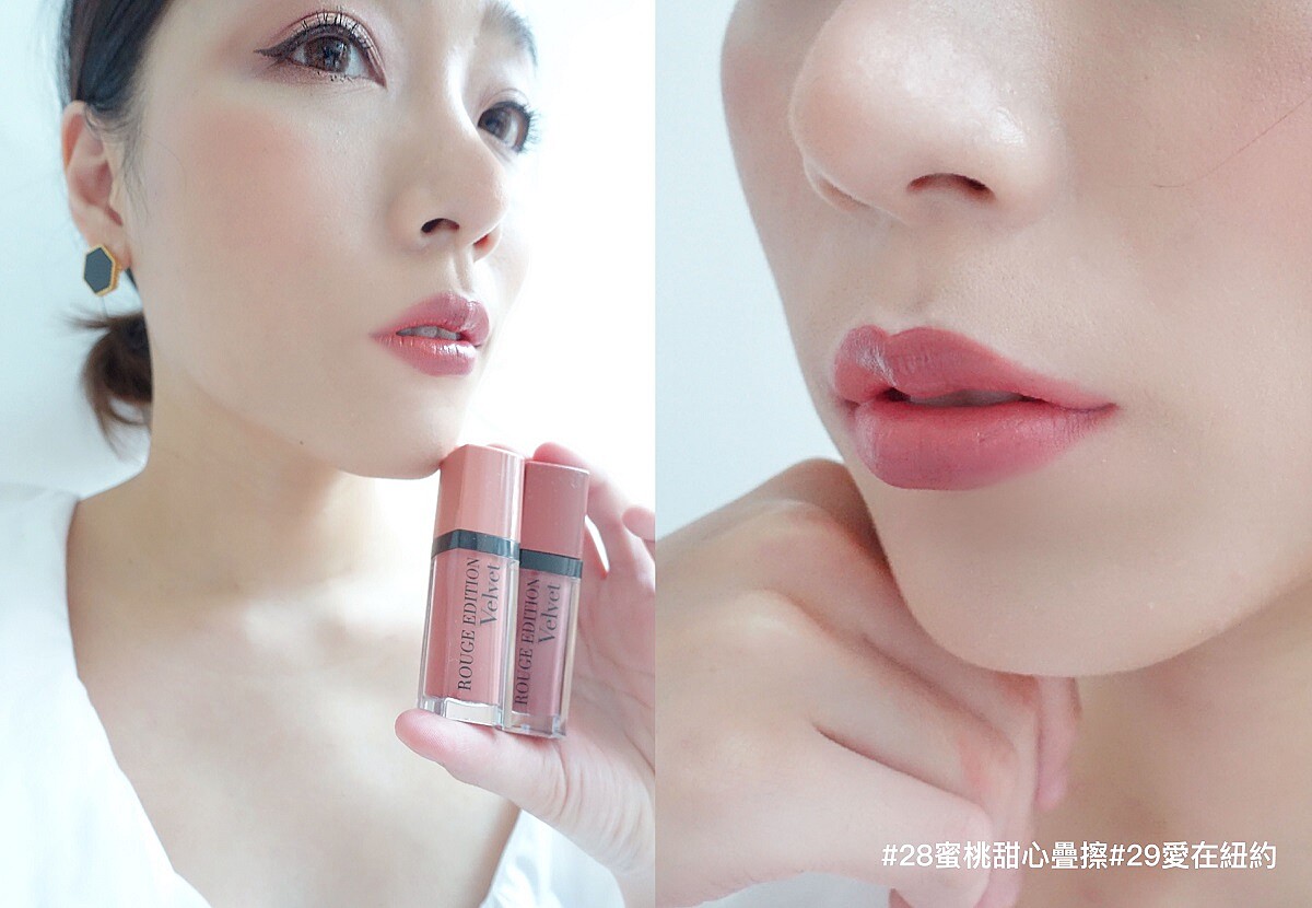 #28蜜桃甜心打底後,再用#29愛在紐約勾勒上下唇緣,輕點暈染開來,類似臉部刷上修容的效果,增加唇型的立體感,用一點小技巧,就可以讓唇型更加完美嘟翹。結合土色、裸膚、粉色的#29愛在紐約和#28蜜桃甜心疊擦之後,兩色自然的融合在一起,讓經典的優雅更加上乘。