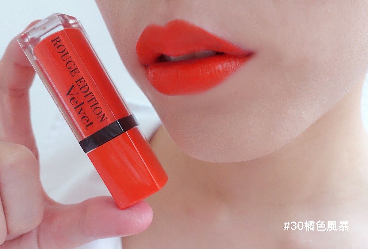 擁有健康小麥色的女孩,深色唇膏就是避踩的地雷,可以選擇鮮艷活力的色系提亮膚色,#30橘色風暴,顏色鮮豔飽和的橘子色,試用前M編還擔心太過螢光很難駕馭,擦上之後意外的可愛,霧面的螢光完全不用擔心會過份誇張。