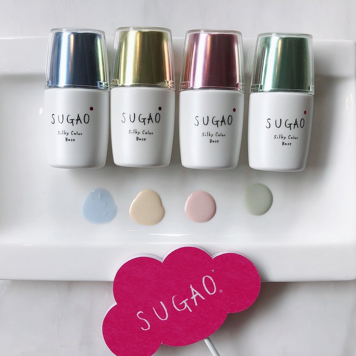 這次SUGAO推出的新品「絲緞感潤色飾底乳」,可謂打造偽素顏的秘密武器,一次推出4色,搞定「膚色不均、泛紅、蠟黃、黑眼圈」等問題,粉底前使用,能讓底妝更自然透涼!超粉嫩的4種顏色,依照膚色與膚況搭配使用。