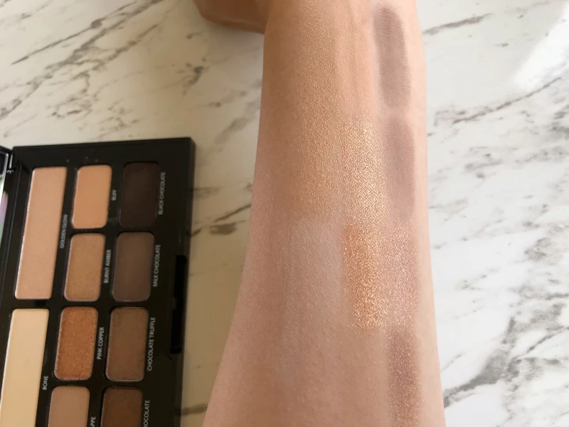 ↑BOBBI BROWN風格至上10色眼彩盤#Bronzed Nudes Edition松露巧克力手部試色