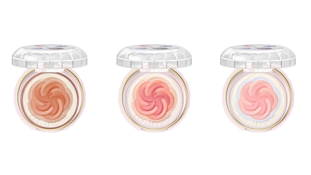 以2色腮紅混合而成的微笑俏顏修容N再次推出3款新色,能夠賦予肌膚紅潤,水漾光澤和透明感,更添加水溶性膠原蛋白成分,輕鬆打造澎潤蘋果肌。