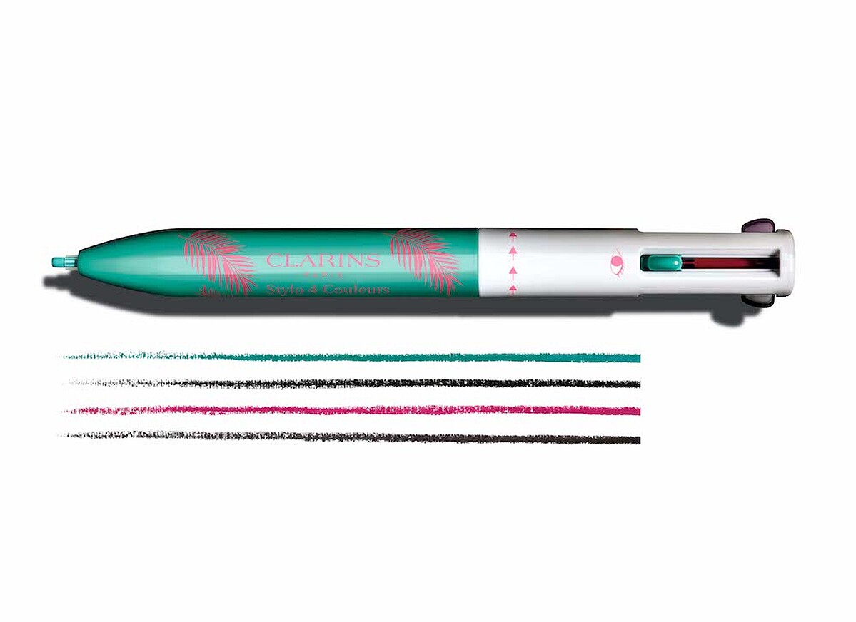 克蘭詩推出3色眼彩,1色唇彩的4-in-1四色轉轉筆,包括三色眼線筆與一色唇線筆,四種充滿渡假風情的新色,包含眼妝的漆黑色、海洋薄荷、與葡萄紫,與唇妝的紅鶴粉。