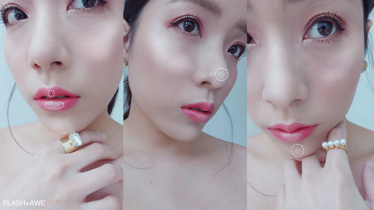 唇中央、鼻頭、下巴刷上FLASH+AWE裸金